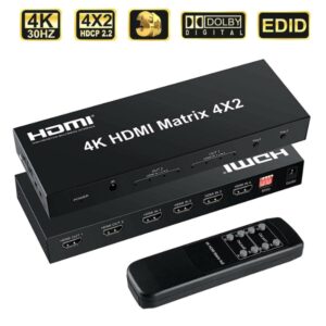 Matrix HDMI 4x2 4K2K com audio P2 e Toslink Duplo-HDMX4X2-N
